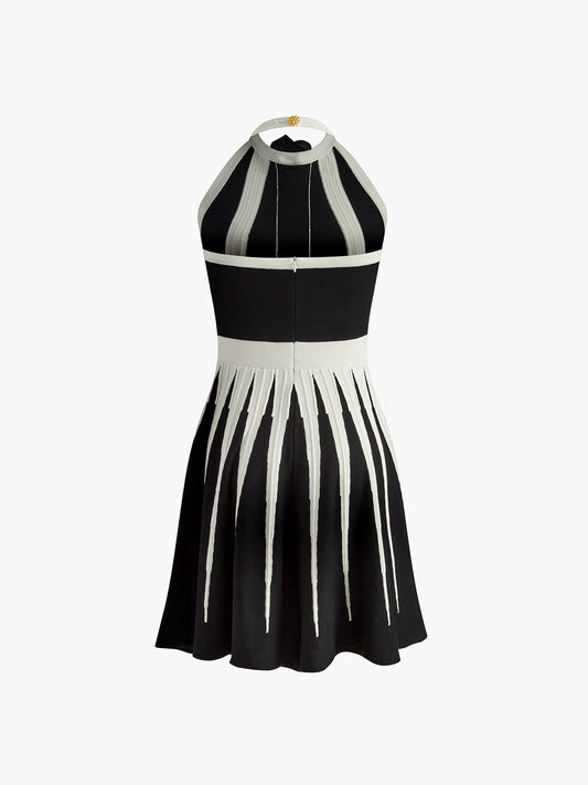 34% İndirimÇizgili Jakarlı Halter Elbise