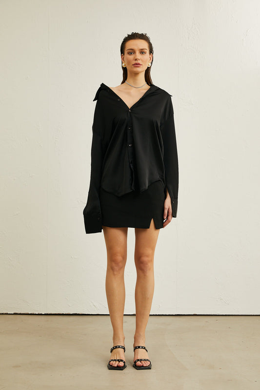 30% İndirimCordelia Siyah Bağcıklı Deri Gömlek