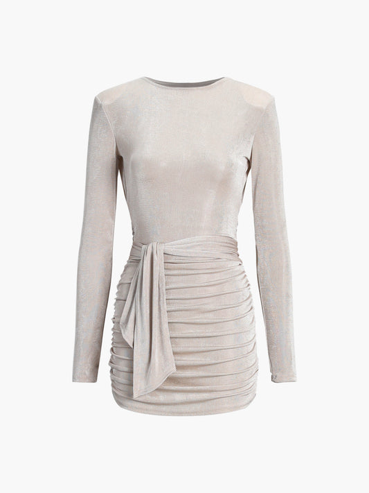 40% İndirimCrew Neck Tie Backless Elastic Waist Short Dress