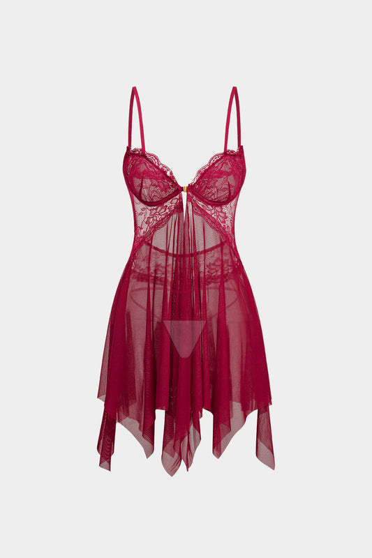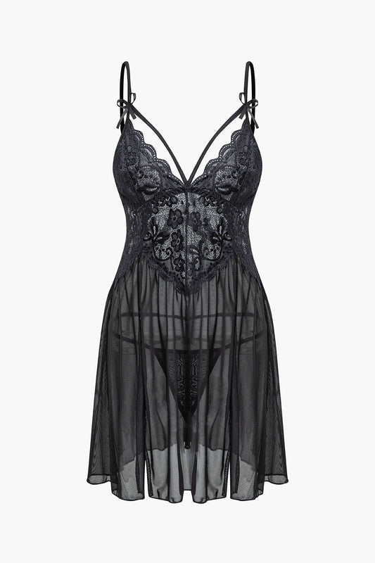 Dantel Şeffaf Bustiyer Slip Gece Elbisesi ve Külot Seti