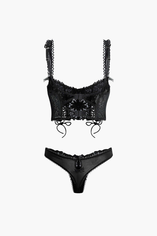 Dantel Çapraz Bağlama Detaylı Sırt Dekolteli İç Giyim Garter Seti