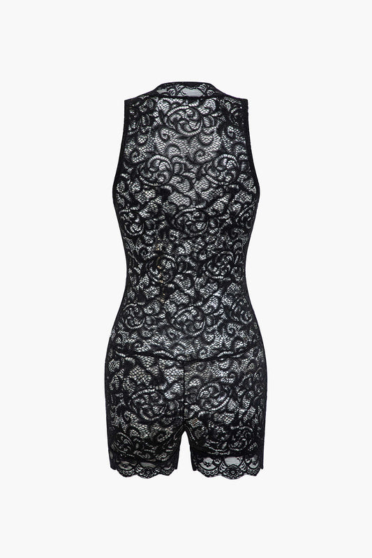 29% İndirimDantel Şeffaf V Yaka Kolsuz Tulum