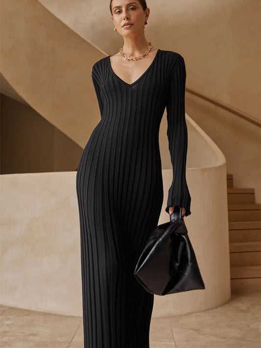 31% İndirimGeniş Fitilli V yaka Maxi Elbise
