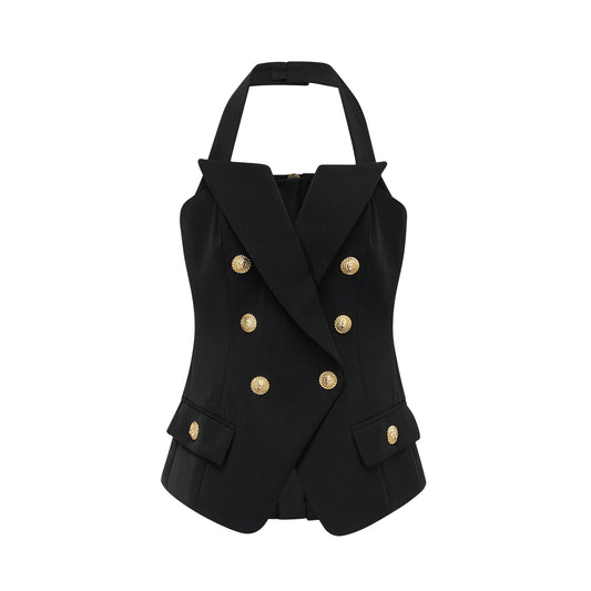 36% İndirimHalter Sırtı Açık Altın Düğmeli Kısa Elbise