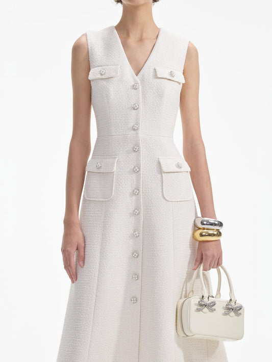 29% İndirimInès Beyaz Kristal Süslemeli Midi Elbise
