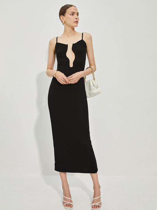 27% İndirimİnci Detaylı V Yaka Slip Midi Elbise