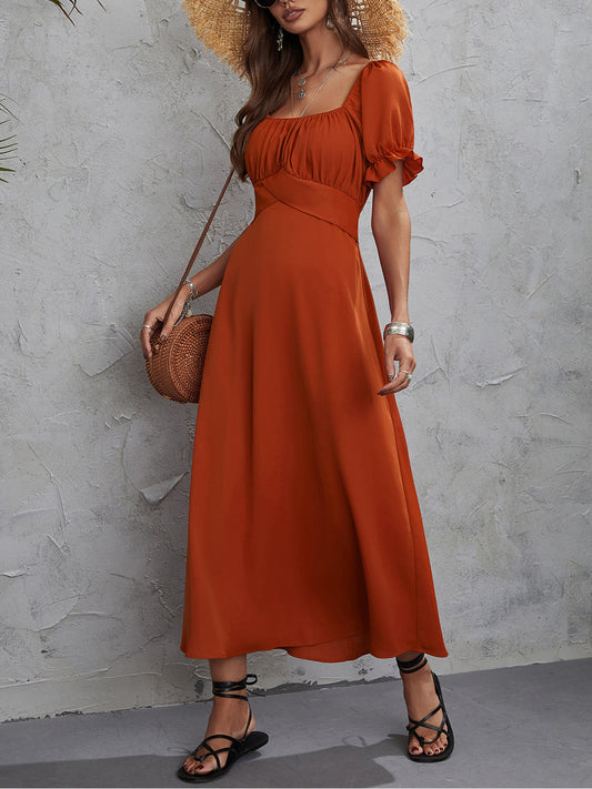 30% İndirimKare Yaka Yırtmaçlı Elbise