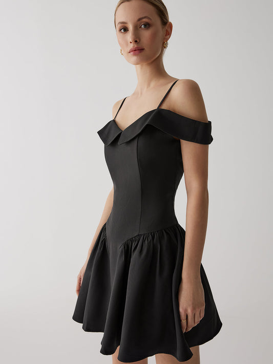 35% İndirimKatı Düşük Omuz Kısa Elbise
