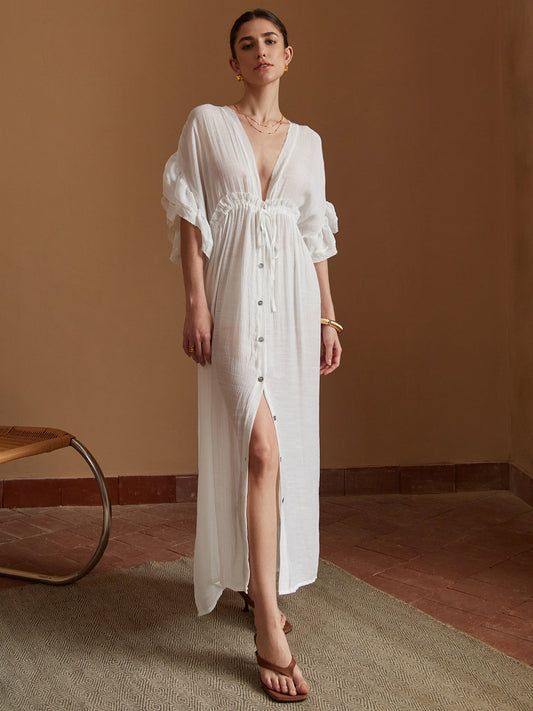 31% İndirimKatı İpli Bel Kimono Uzun Elbise