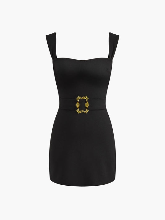 44% İndirimKare Yaka Kuşaklı Kısa Elbise