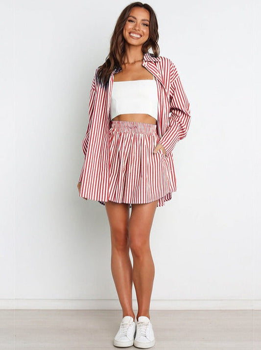 36% İndirimKırmızı Çizgili Uzun Kollu ve Şortlu Takım