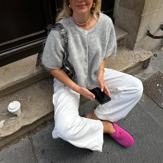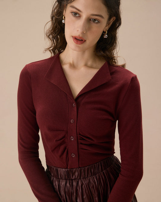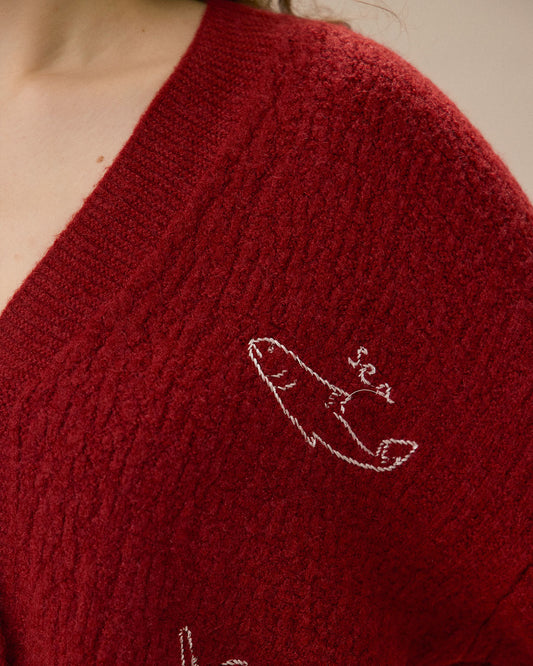 42% İndirimKırmızı V Yaka Düşük Omuz Düğmeli Hırka