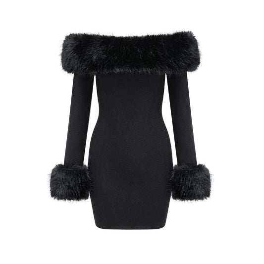 32% İndirimMadeleine Etek Kürk Detay Omuzları Açık Elbise