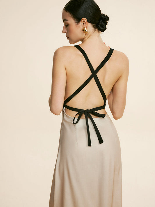 30% İndirimPatchwork Kolsuz Saten Uzun Elbise