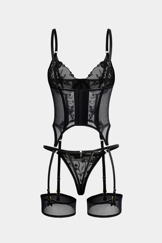 26% İndirimŞeffaf Tül Nakışlı Boncuklu Jartiyer Takımı