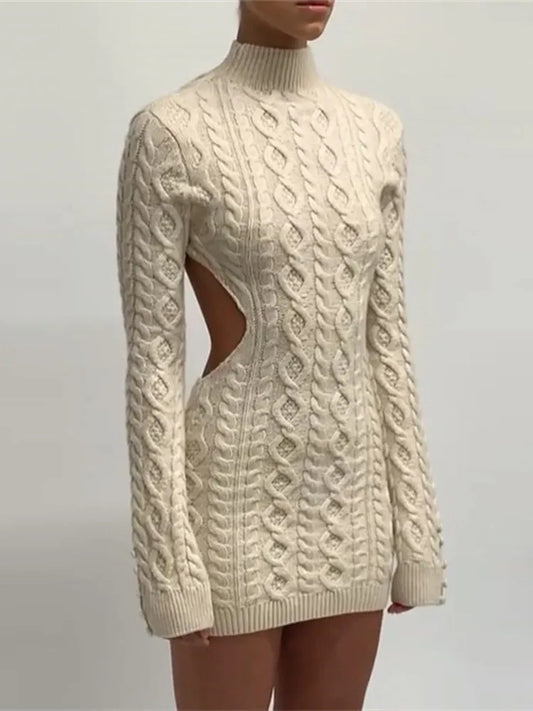Balıkçı Yaka Sırt Detay Örme Mini Elbise