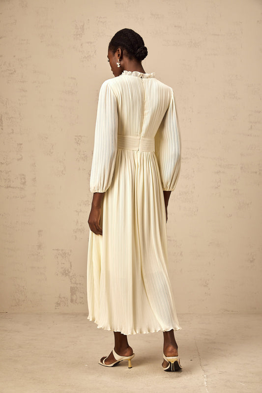 Yana Beyaz Kristal Detaylı Pilili Midi Elbise