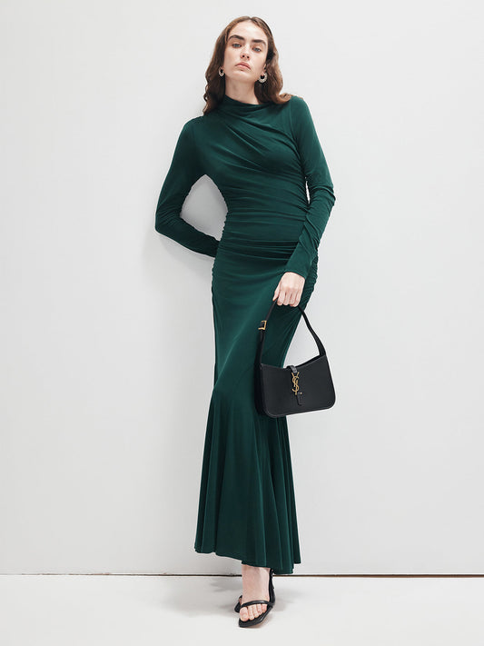 Yan Bağlı Yırtmaçlı Uzun Elbise