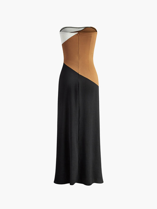 Zarif Straplez Pileli Maksi Elbise