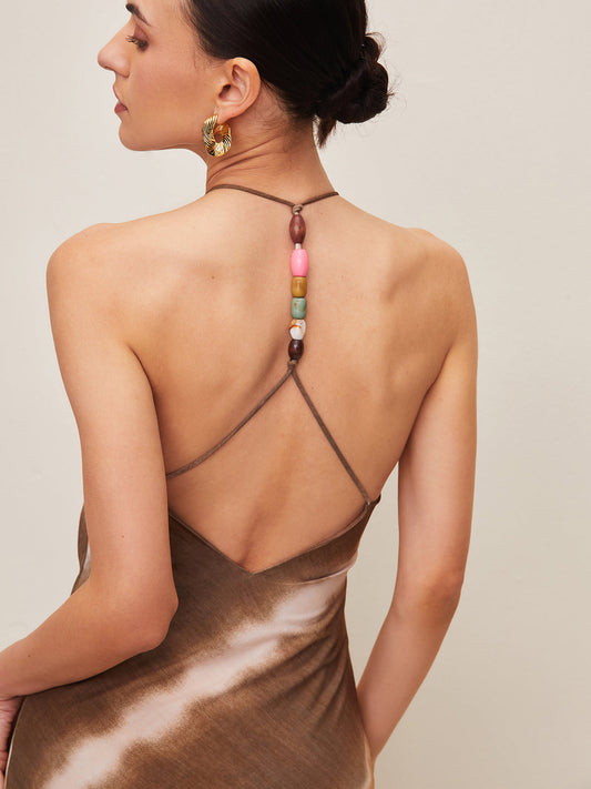 Batik Baskı Halter Sırt Dekolteli Etek Takımı