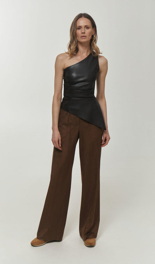 Sliess Düz Deri Asimetrik Üst-Kahverengi