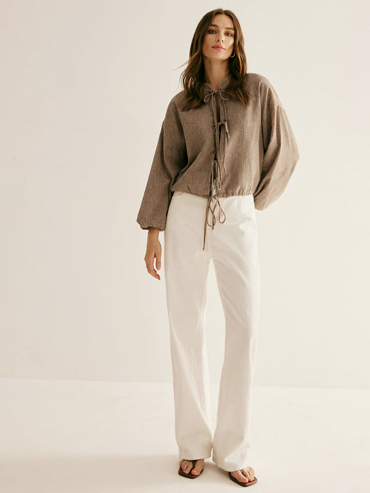 Retro İpli Bağlama Bol Bluz
