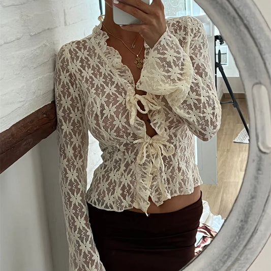 Dantel İspanyol Kol Bağlamalı Bluz