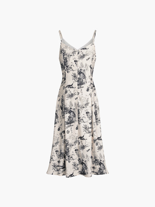 Sırt Askılı Çiçek Desenli Cami Midi Elbise