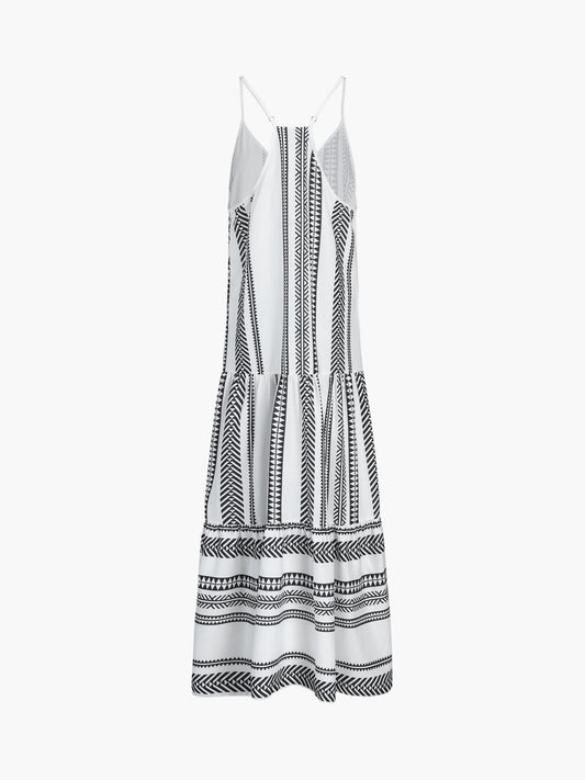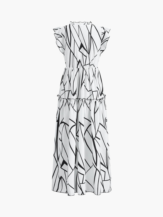 Soyut Çizgiler Baskılı Kolsuz Maxi Elbise