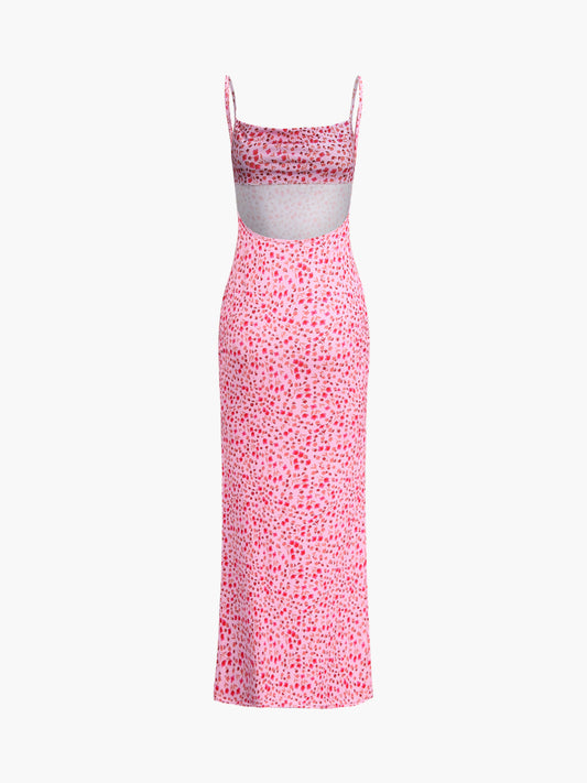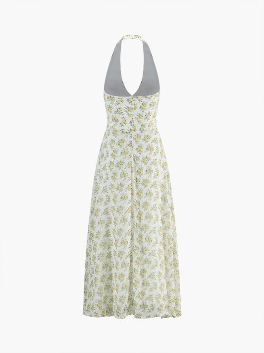 Summer Crush Çiçek Desenli Sırtı Açık Cami Uzun Elbise