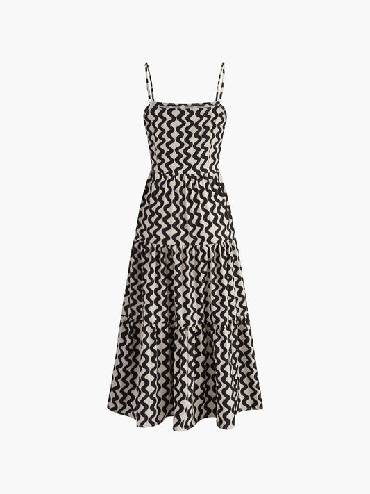 Baskılı Pamuk Halter Kalp Yaka Elbise