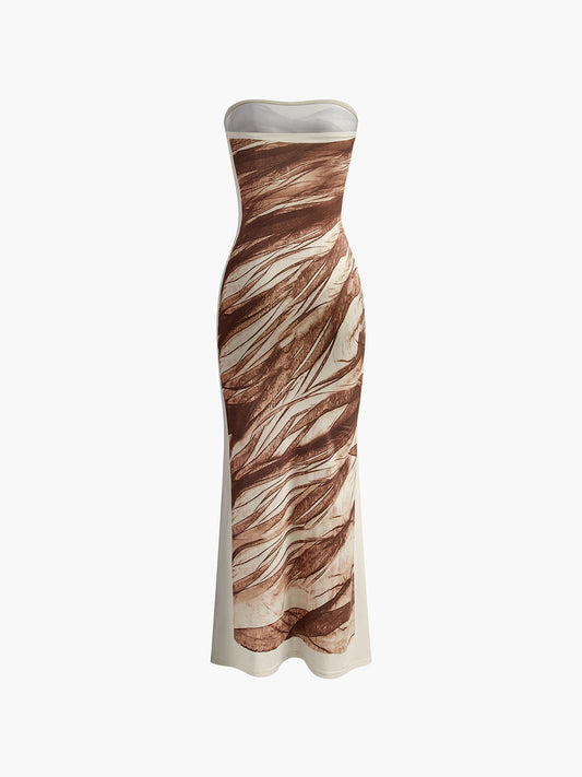 İnce Baskı Streç Straplez Elbise