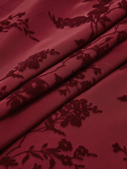 Kare Yaka Fermuarlı Çiçekli Elbise