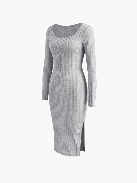 Kare Yaka Yırtmaçlı Elbise