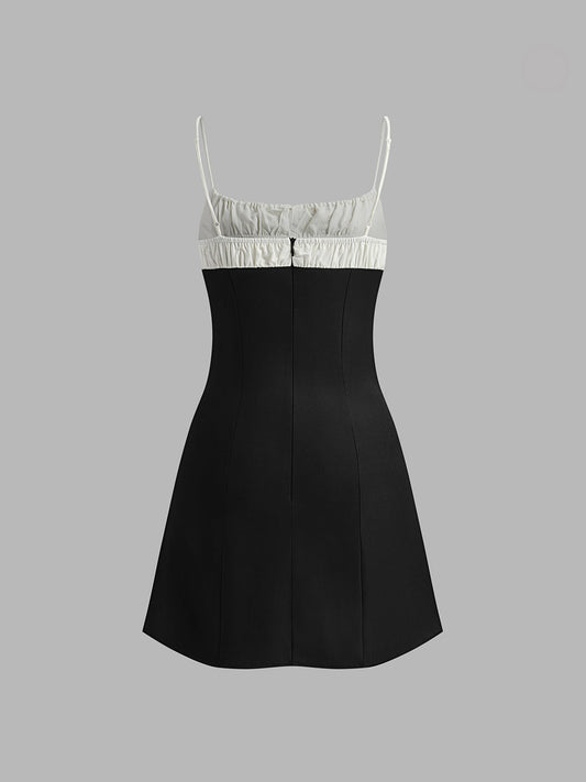 Kontrast Bağcıklı Cami Kısa Elbise