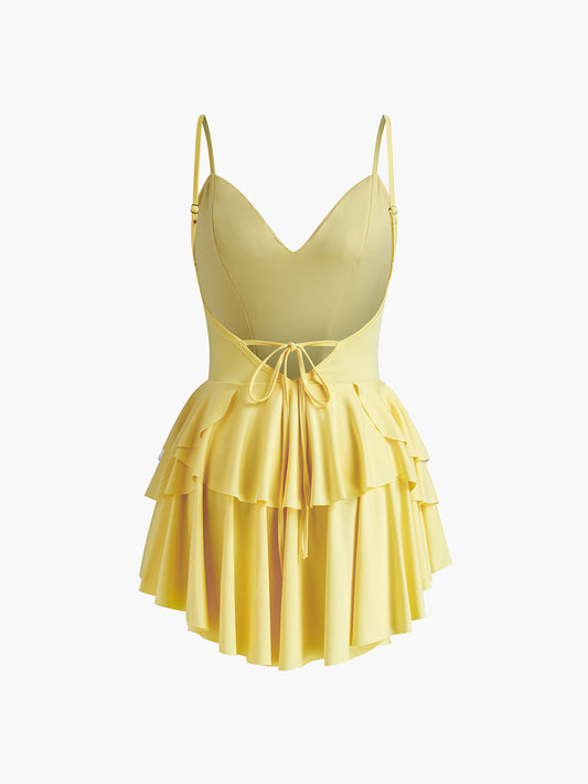 Tüp Dantelli Fırfırlı Kısa Elbise