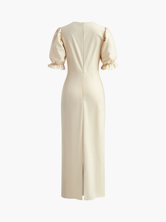 Sırtı Yırtmaçlı Puf Kollu Uzun Elbise