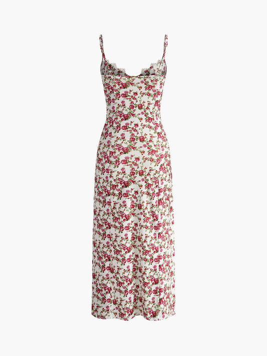 Çiçek Desenli Ayarlanabilir Halter Uzun Elbise