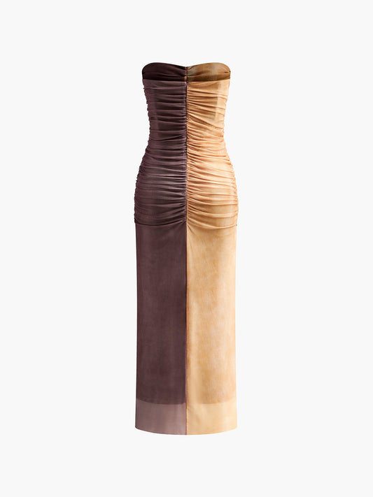 Pileli Renk Bloklu Degrade Elbise
