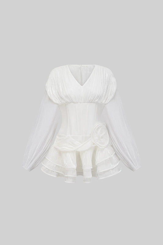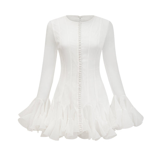 Aurora Fırfır Detaylı Beyaz Mini Elbise