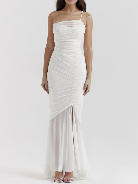 Halter Şeffaf Sırtı Açık Yırtmaçlı Uzun Elbise