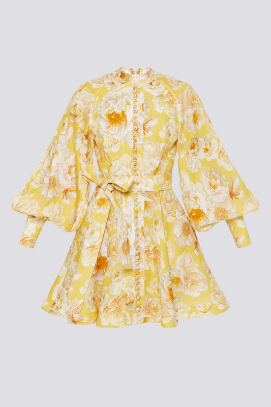 Cassiopeia Balon Kol Çiçekli Mini Elbise