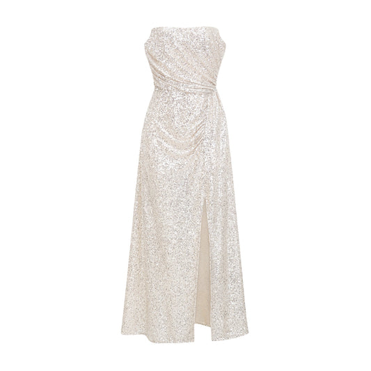 Radiance Elegance Beyaz Taş İşlemeli Straplez Mini Elbise