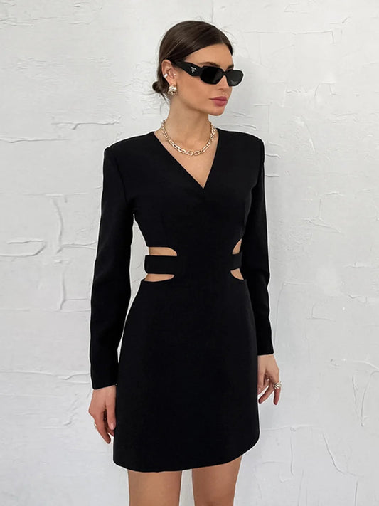 Beli Kesilmiş V Yaka Kısa Elbise