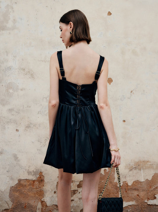 Fransız Kare Yaka Kısa Elbise