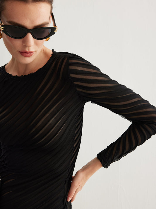 İki Renkli Şifon Panel Elbise Pileli Jersey