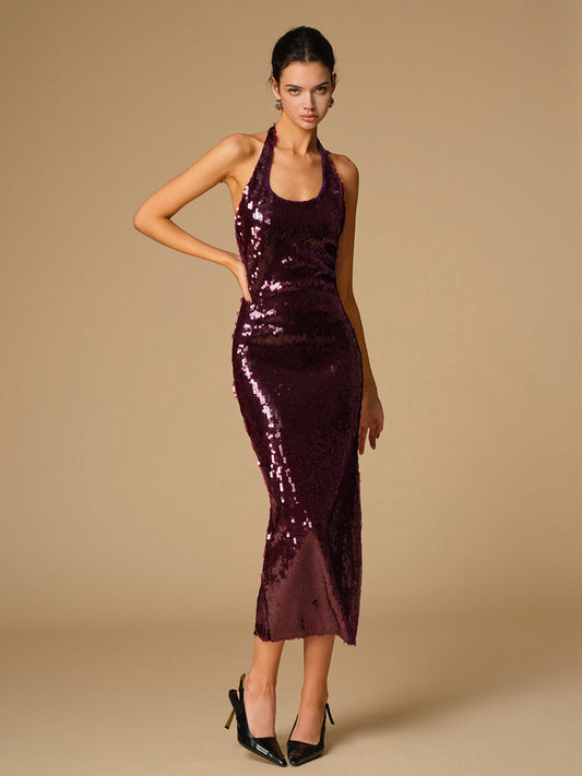 Bağcıklı Sırt Dekolteli Kadife Elbise