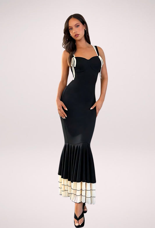 Erik Moru Straplez Katmanlı Uzun Elbise