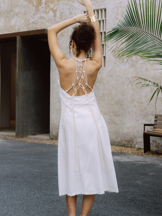 Pamuk Karışımlı Sırtı Açık Halter Midi Elbise