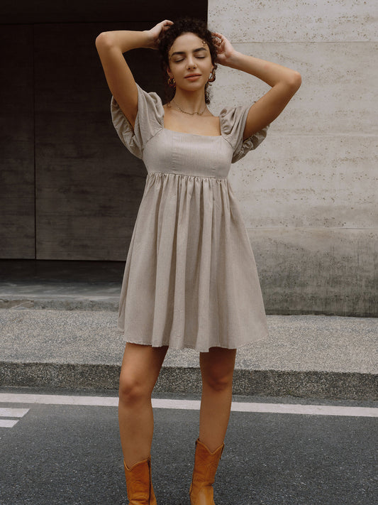 Pamuk & Keten Puf Kollu Kısa Elbise